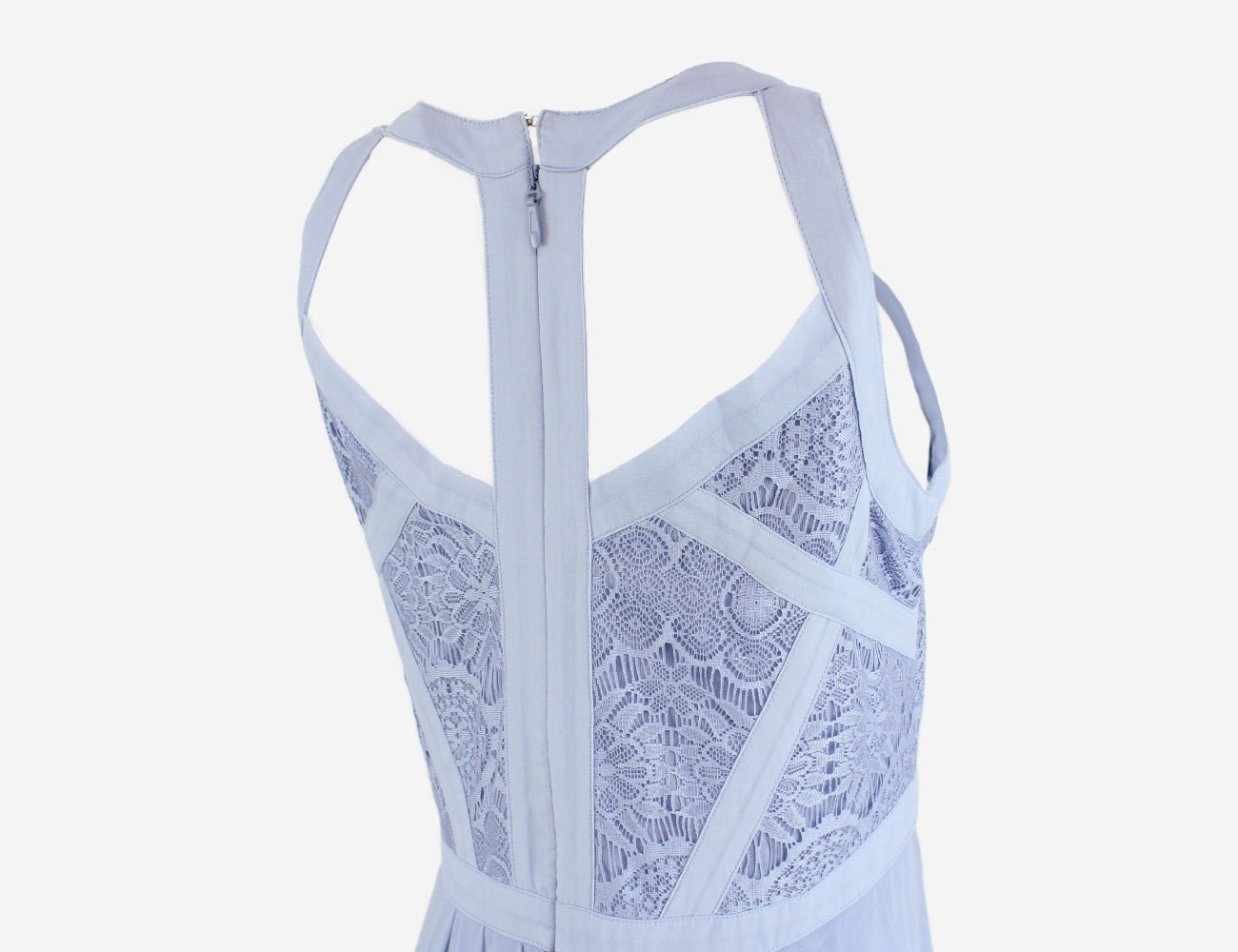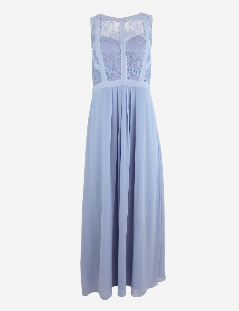 City Chic Powder blue sleeveless maxi chiffon dress with Lace top and cutouts from the back, size 46