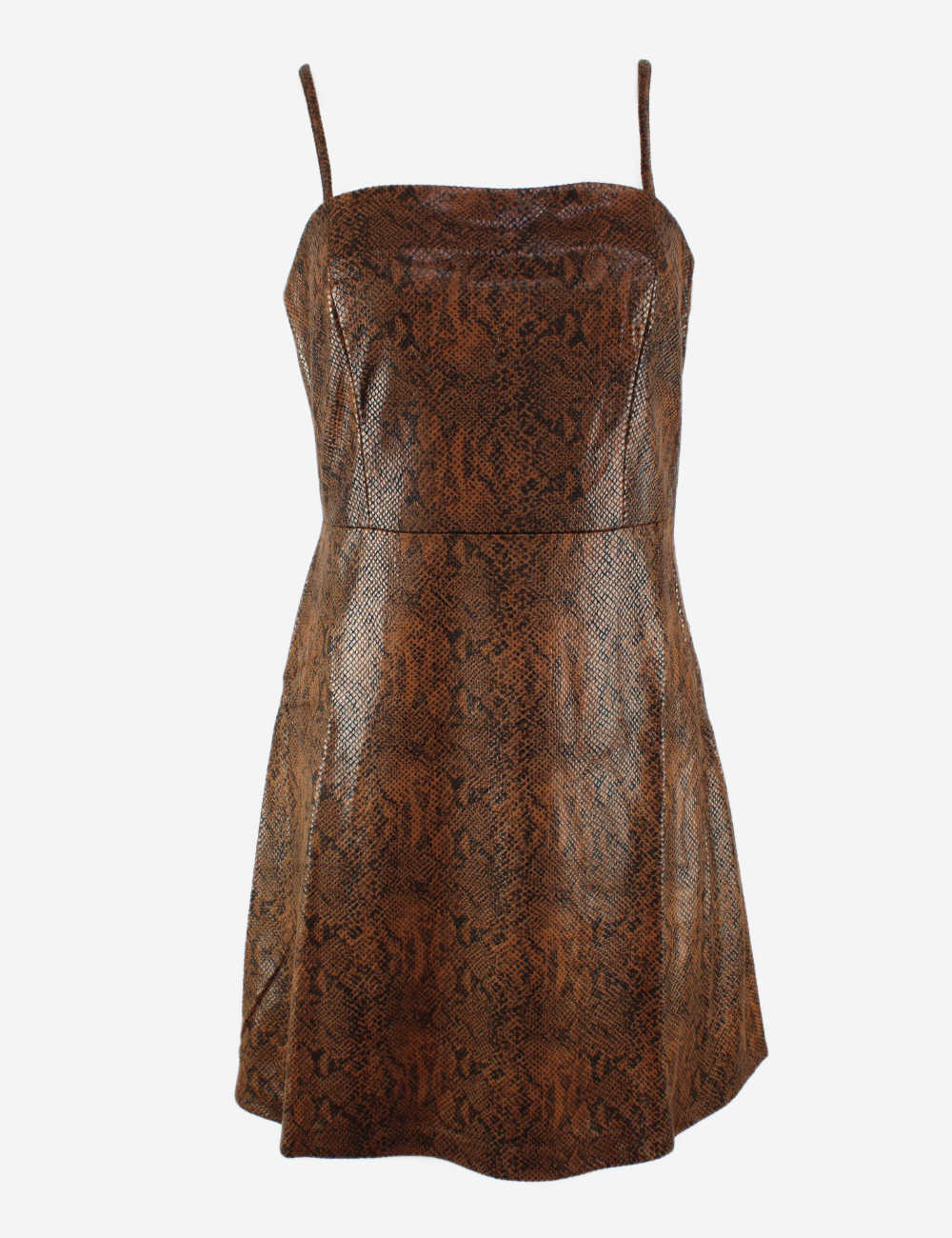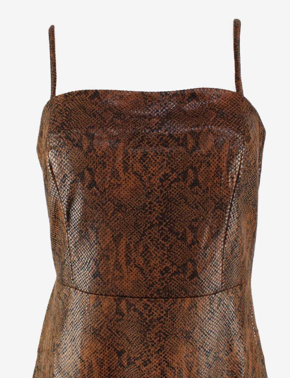 Short fitted dress with thin straps and snake like leather pattern – soft material
