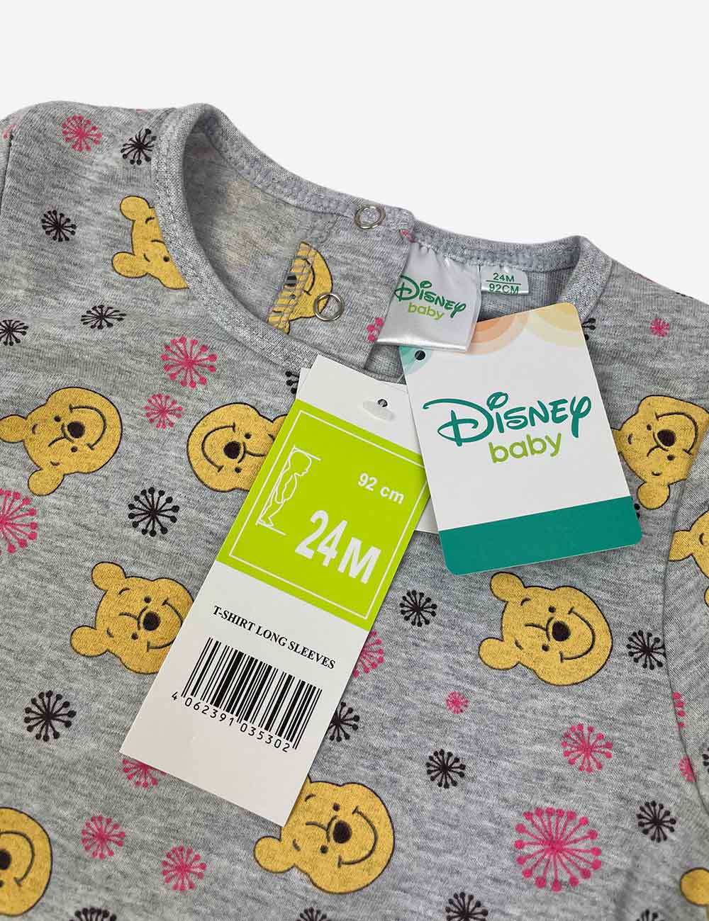 Disney baby grey long sleeve t-shirt with print of Winnie the Pooh, size 2 years (92 cm)