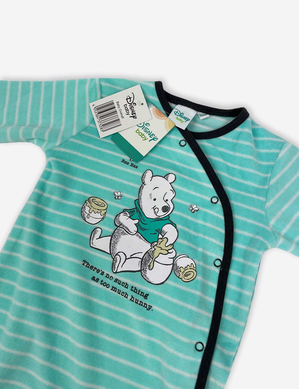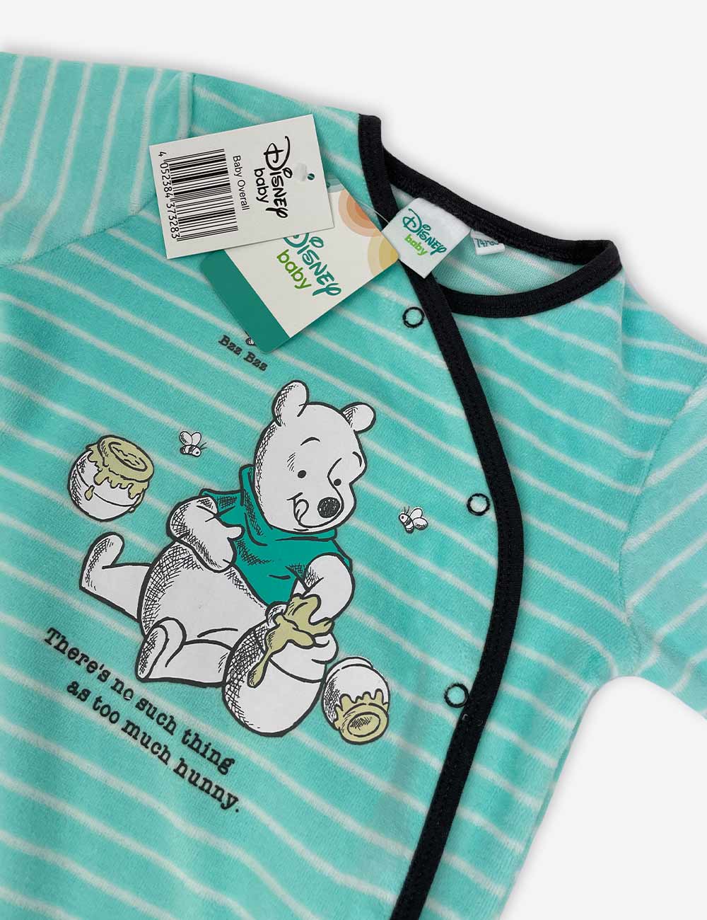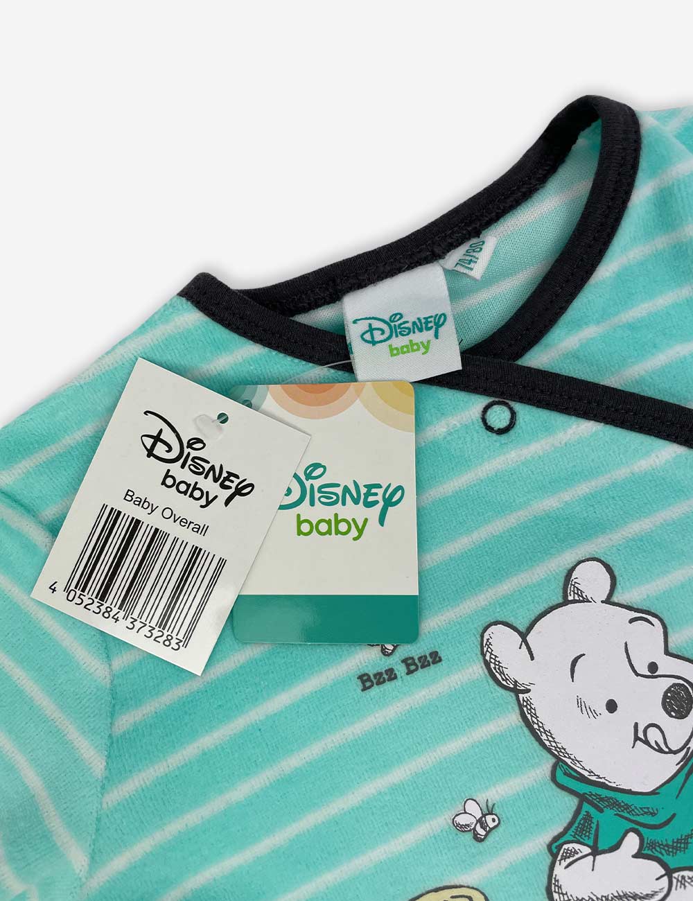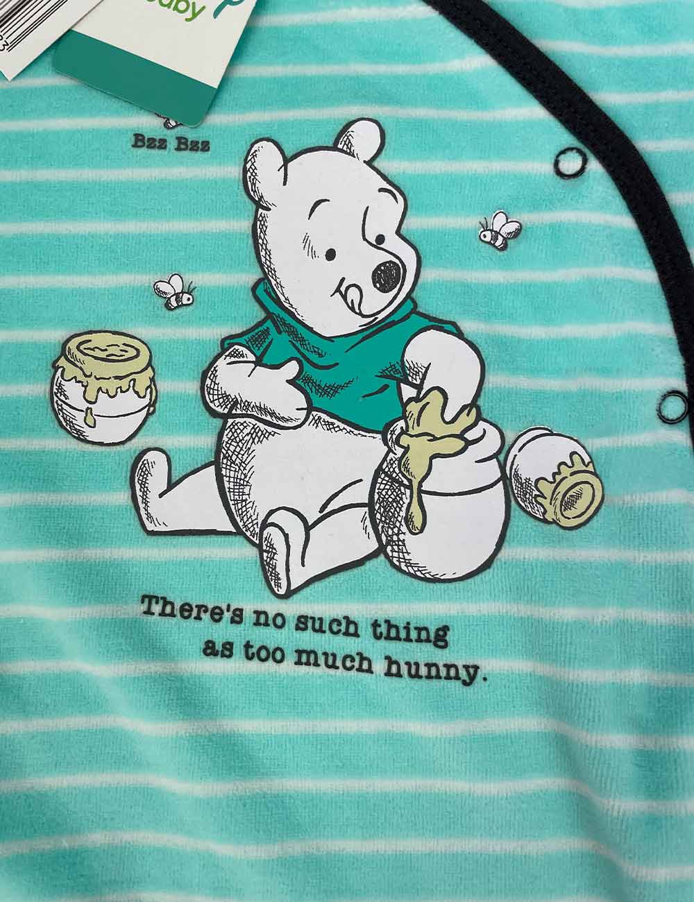 Disney baby green velvet overall with snap butttons and Winnie the Pooh print, size 6-12 months