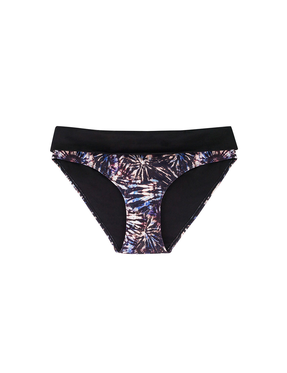 Dorina black high waist bikini bottom with tie dye design and foldable waistband, size UK 20 (EU 48)