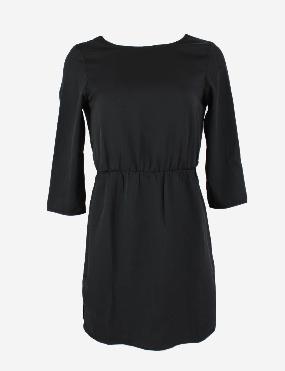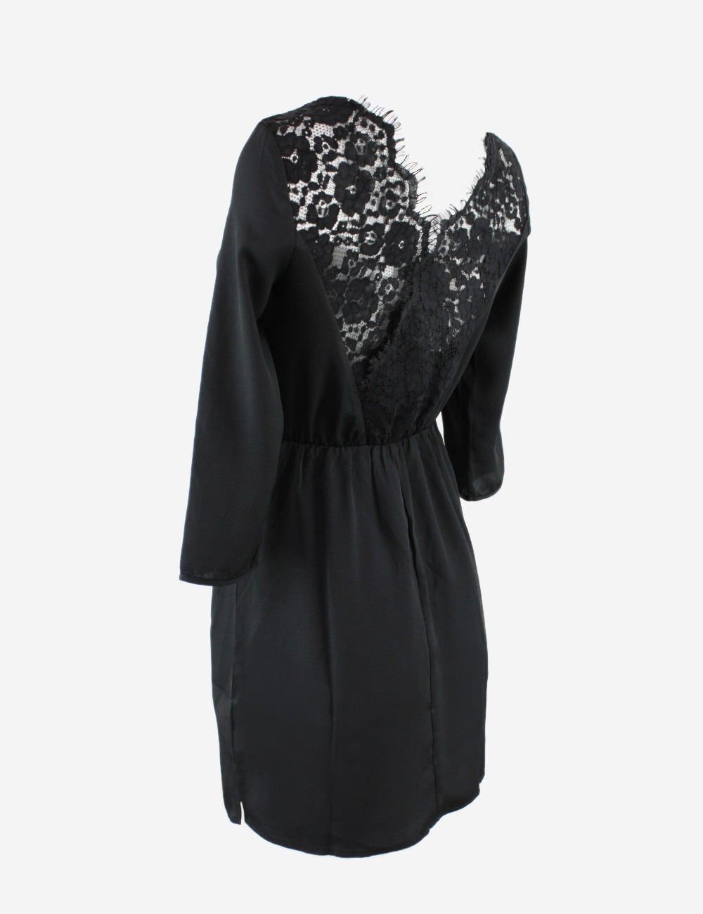 Even & Odd black short dress, midi sleeves, with a V shaped cut-out in the back and lace fabric, size S