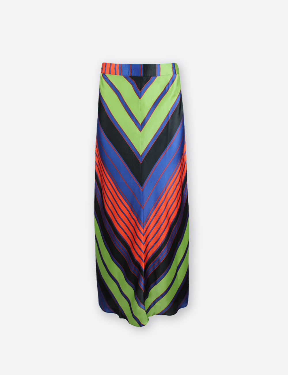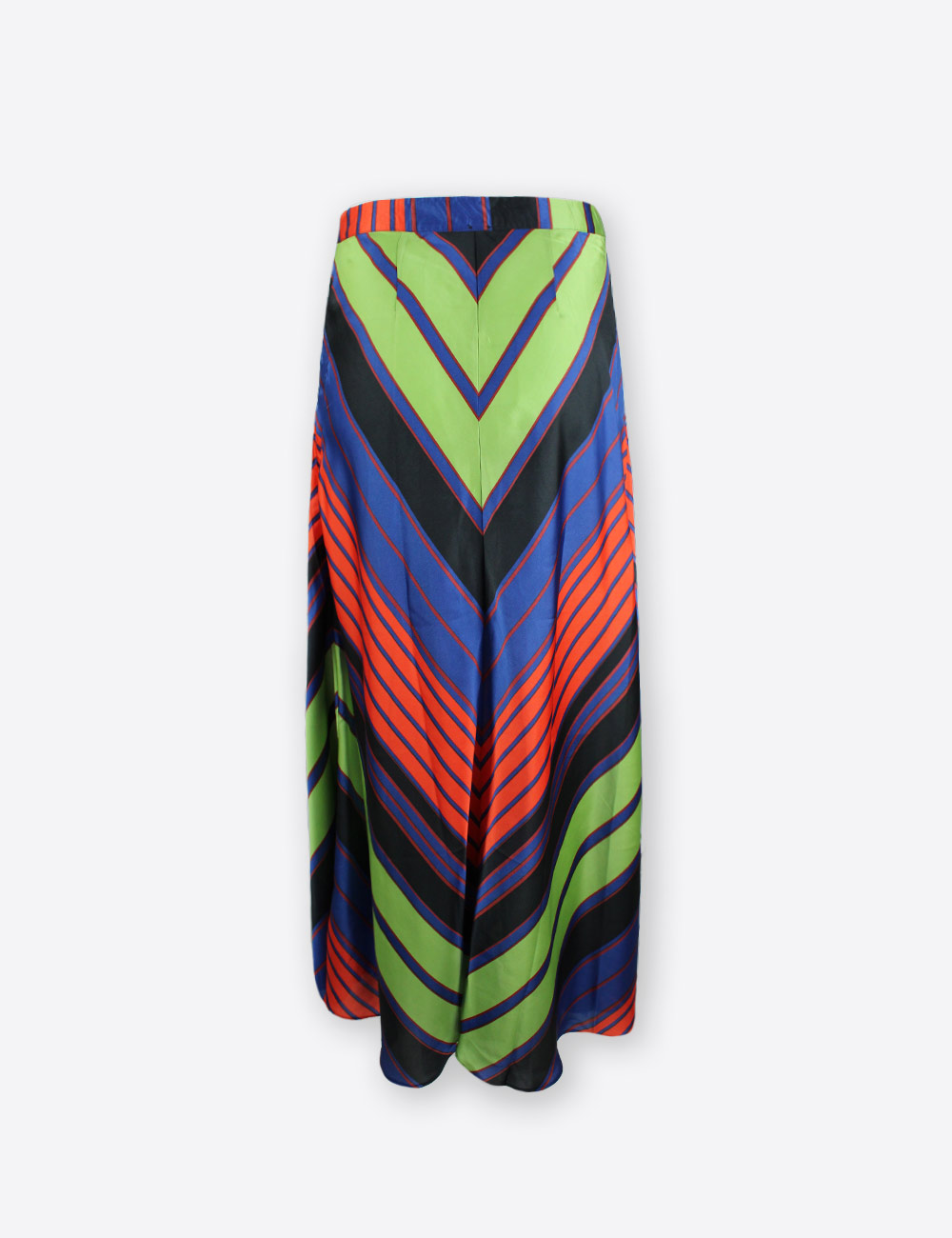 Free People multicolor maxi skirt, handkerchief style with geometric patterns and satin feel, size 34