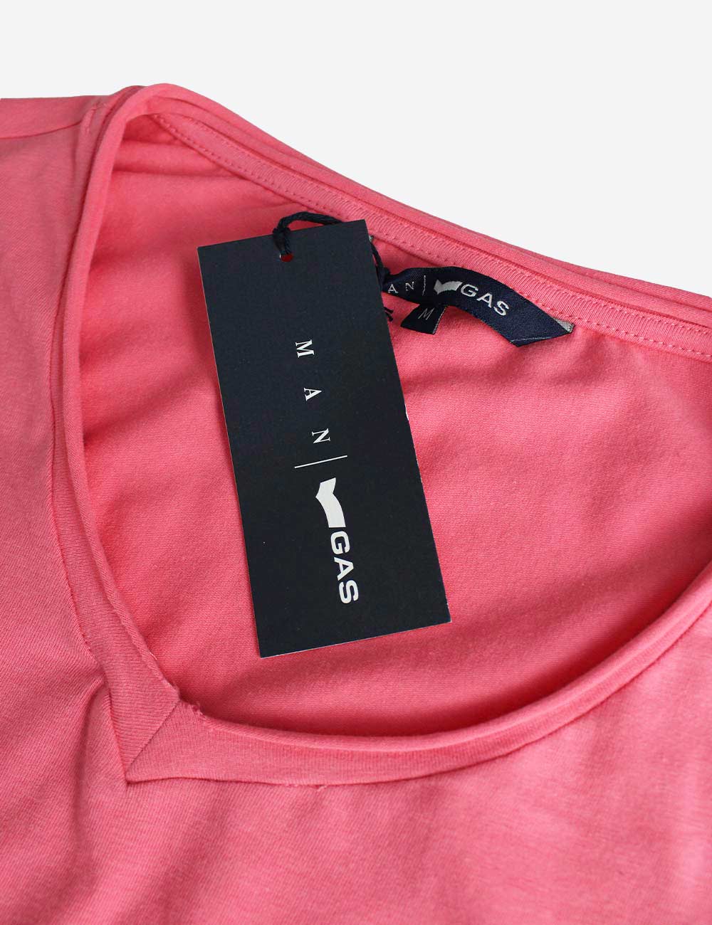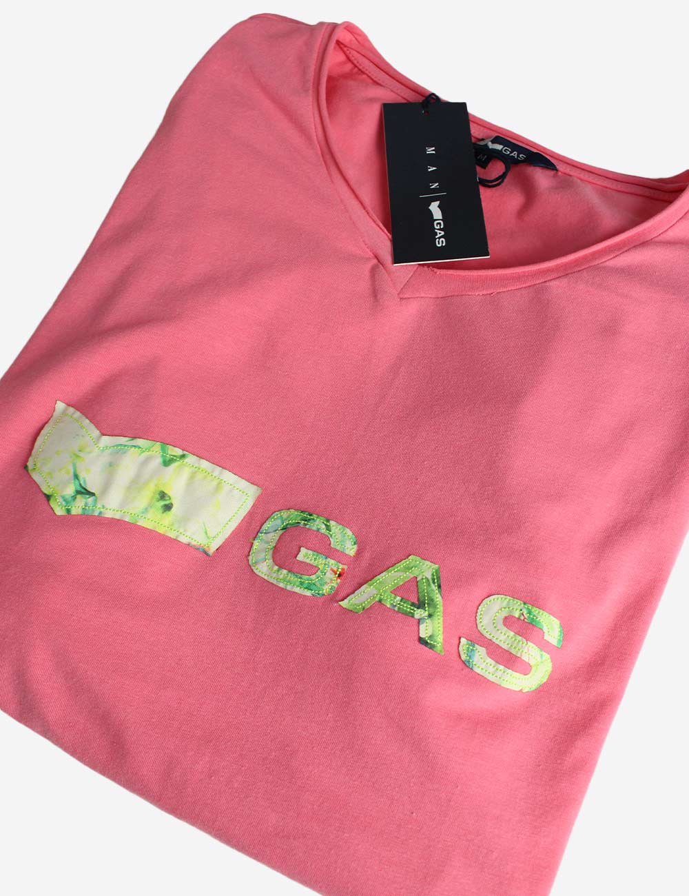 GAS coral short sleeve v-neck t-shirt with embroided GAS print on chest, size S, M, XL