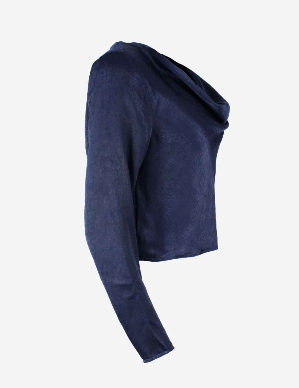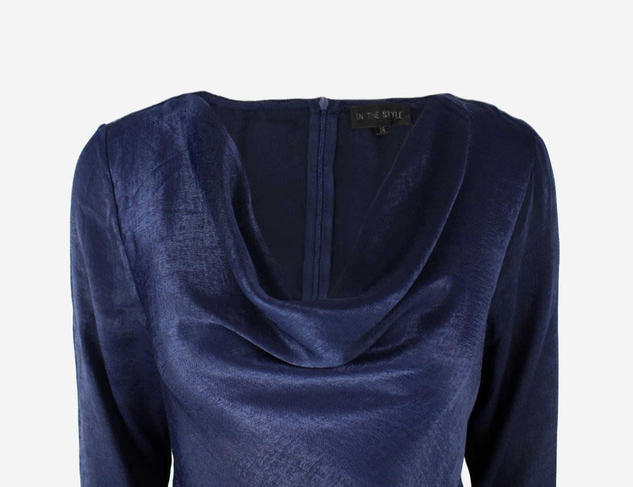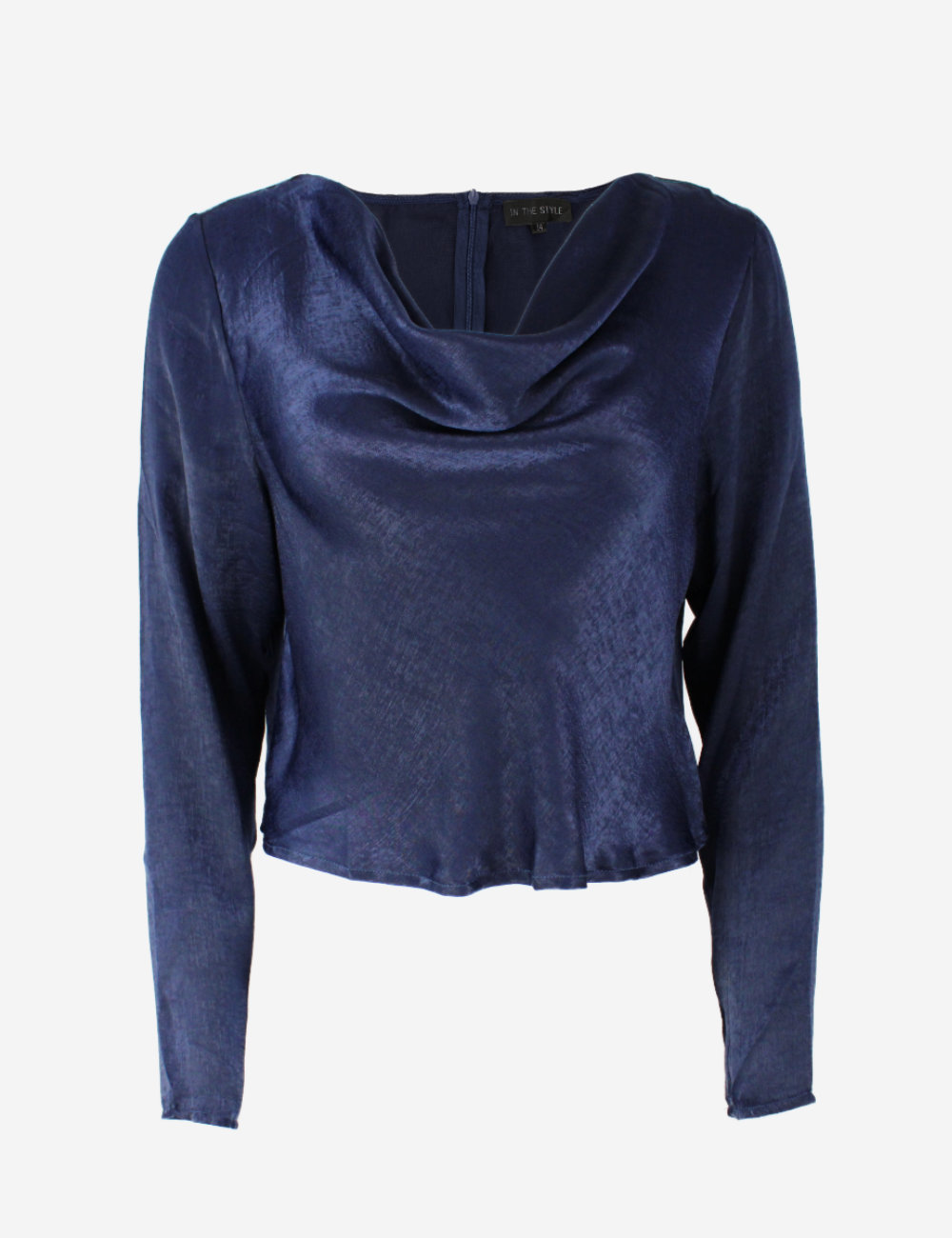 In The Style navy satin feel Long Sleeves crop top with zipper in the back, size 42