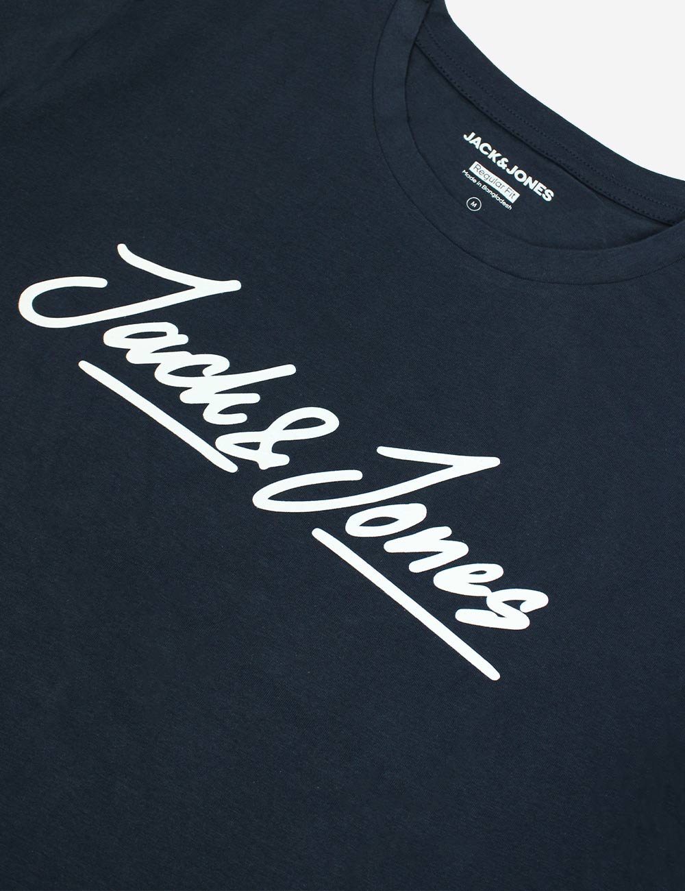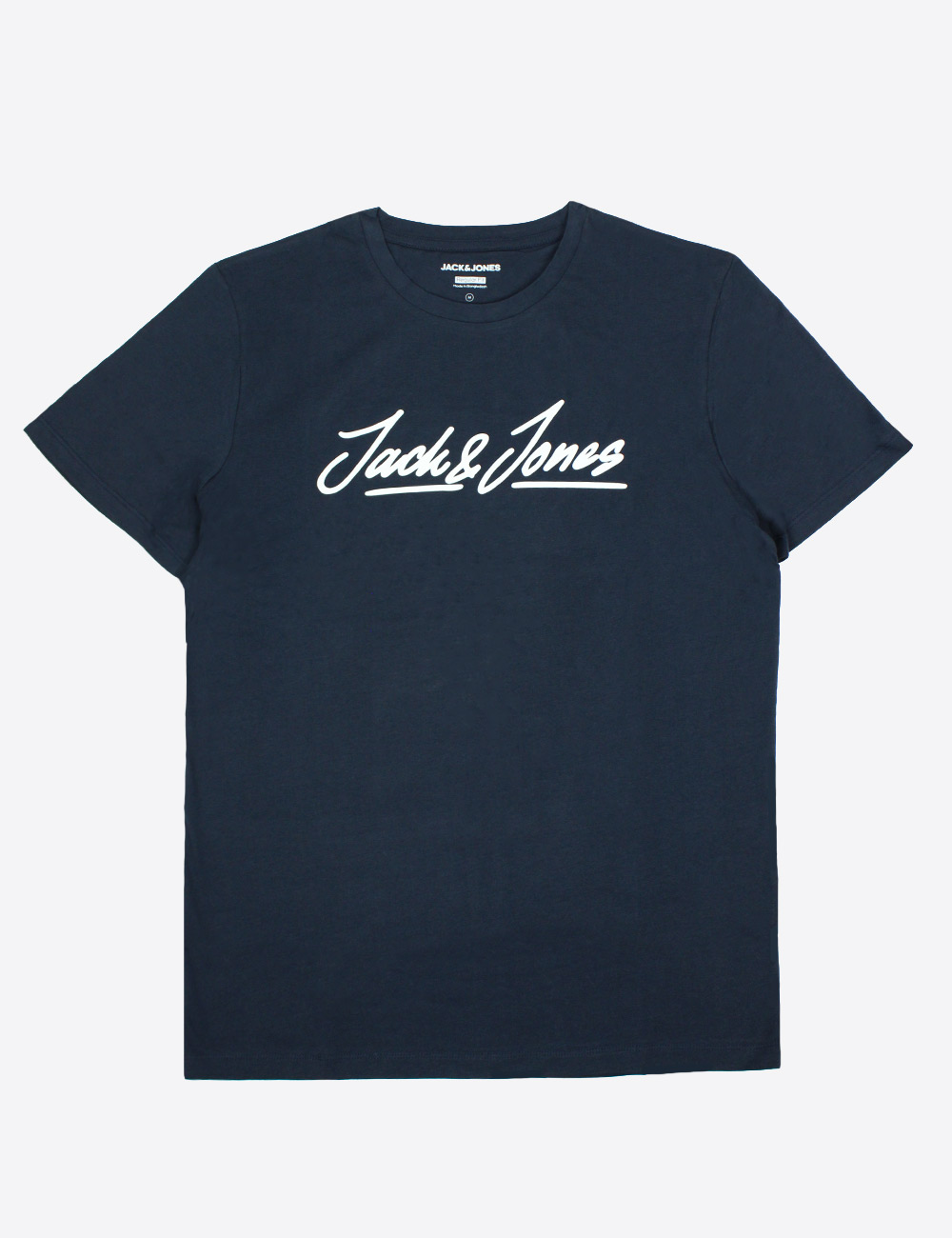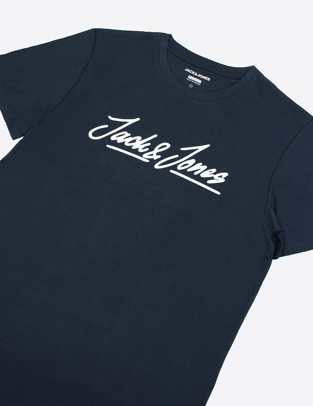 Jack & Jones navy short sleeve crew neck t-shirt with print on chest, size M