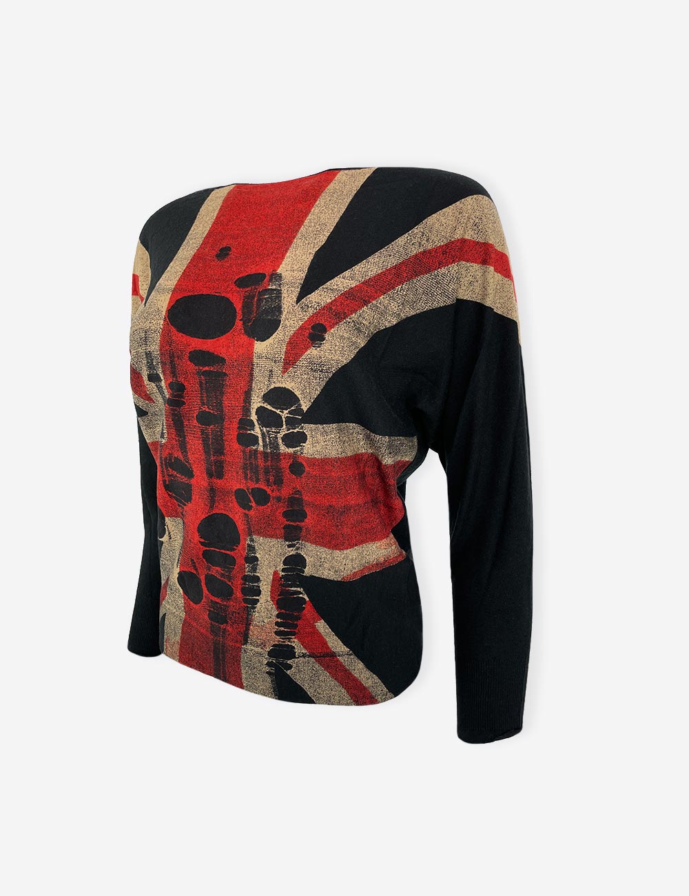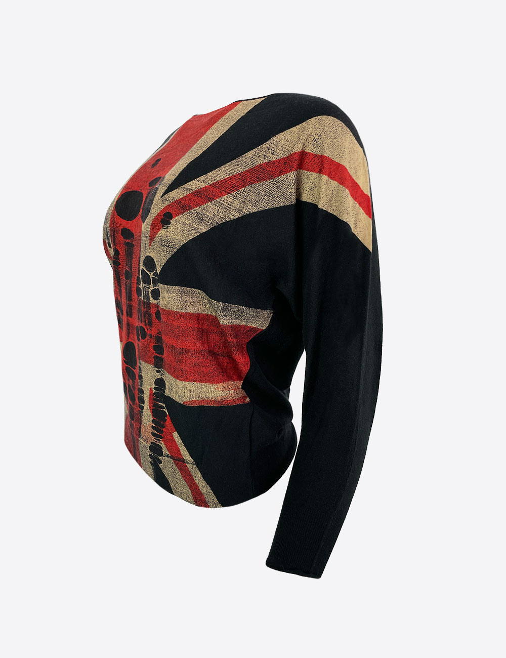 John Richmond black sweater with UK flag design, 80% wool, size M (IT 42)