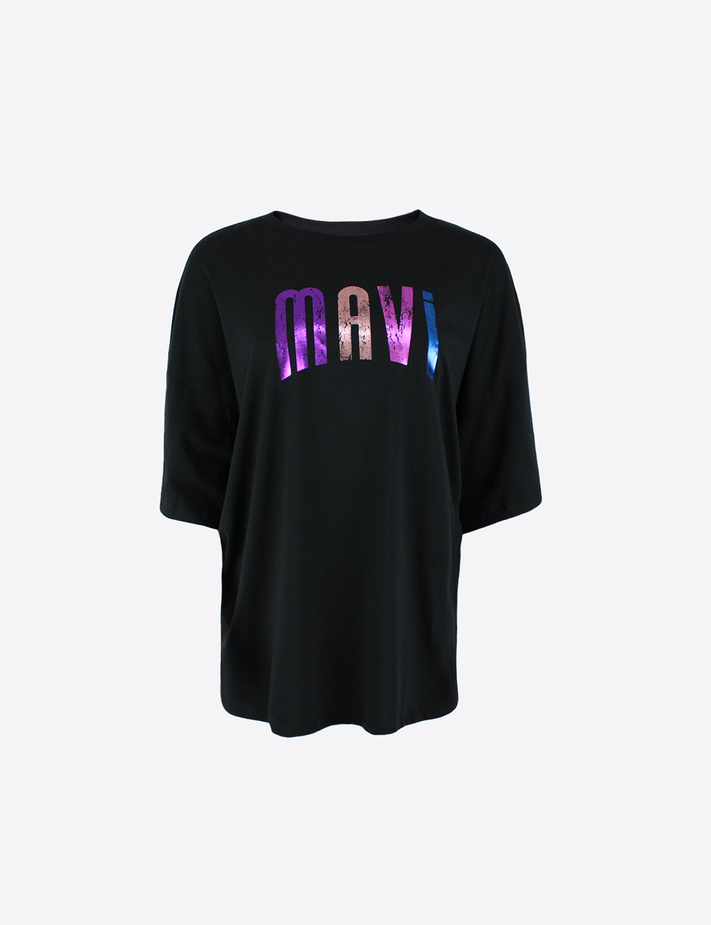 Mavi black short sleeve loose casual t-shirt with print, size XL