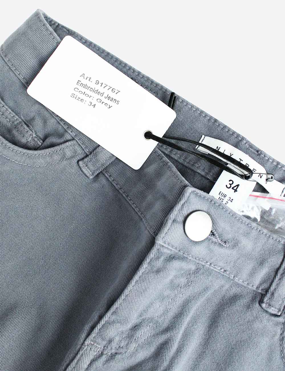NLY Trend grey pertole skinny high waist embroided jeans, size EU 34, EU 38