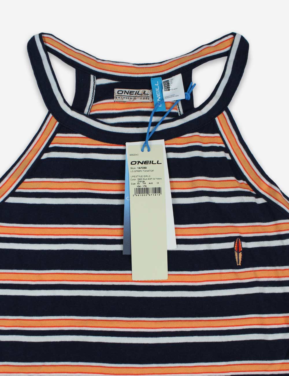 O’Neill navy tanktop with orange and white horizontal stripes, size 12 years (152 cm)