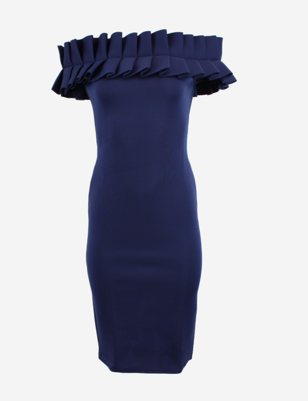 Quiz navy bodycon oof-shoulder midi dress with frill detail on top – Scuba material – size UK 10