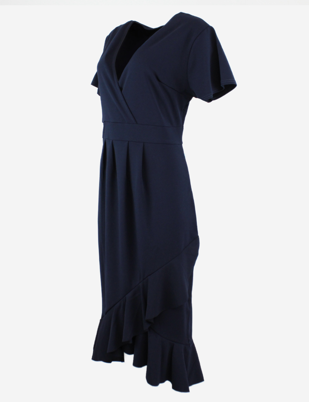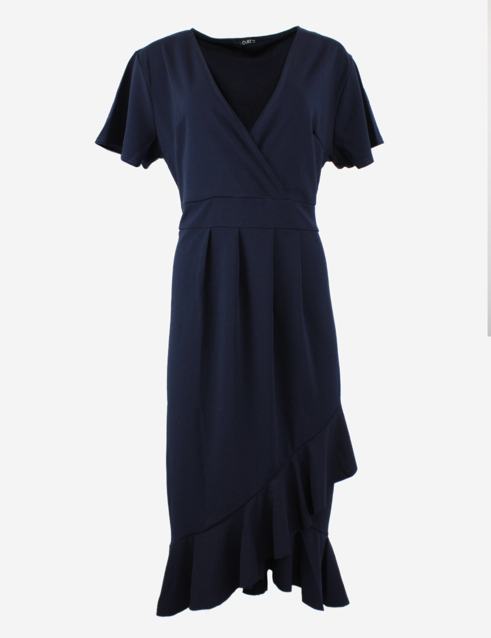 Quiz navy midi wrap over dress, short sleeves with ruffles on hem and end of sleeves, size UK 20