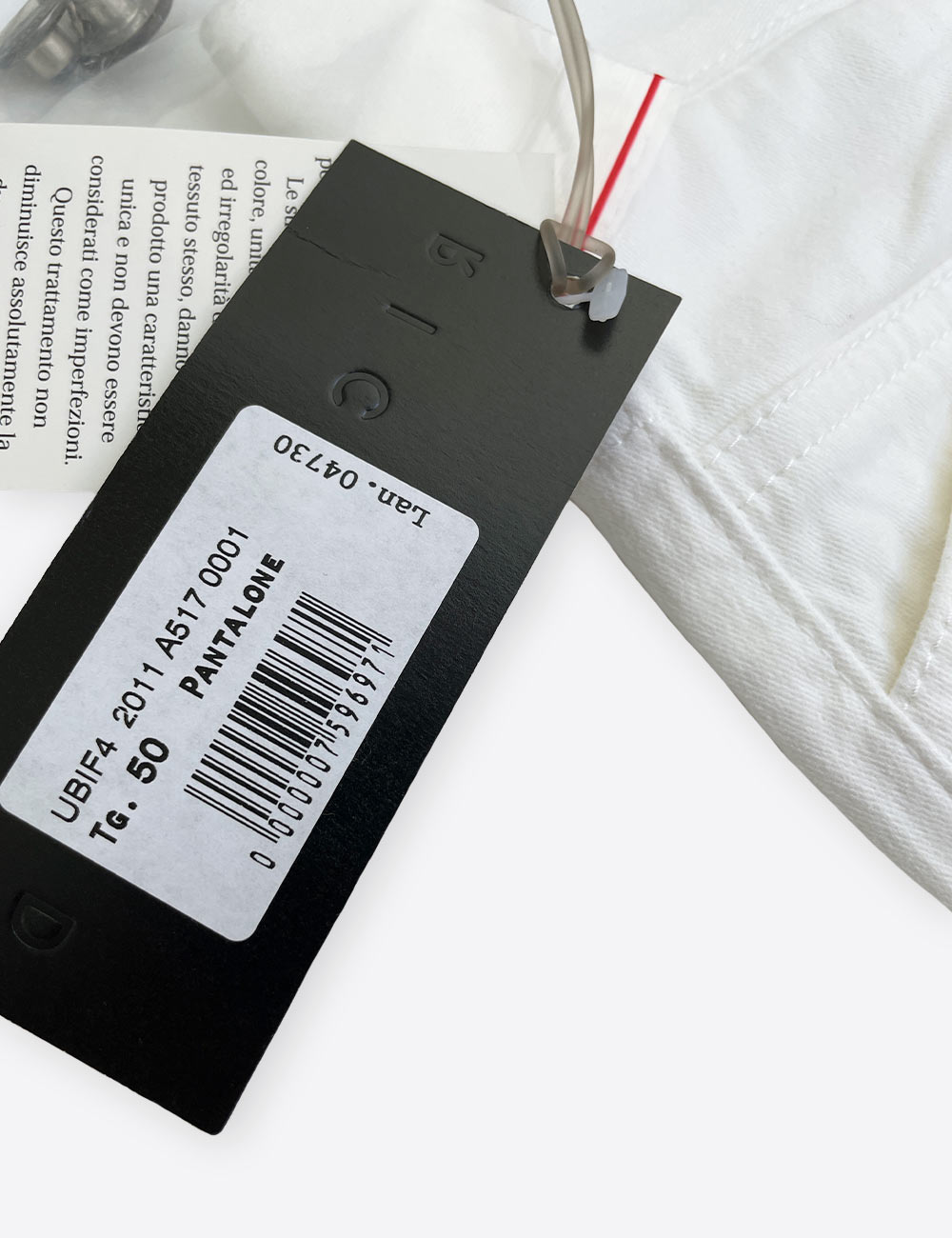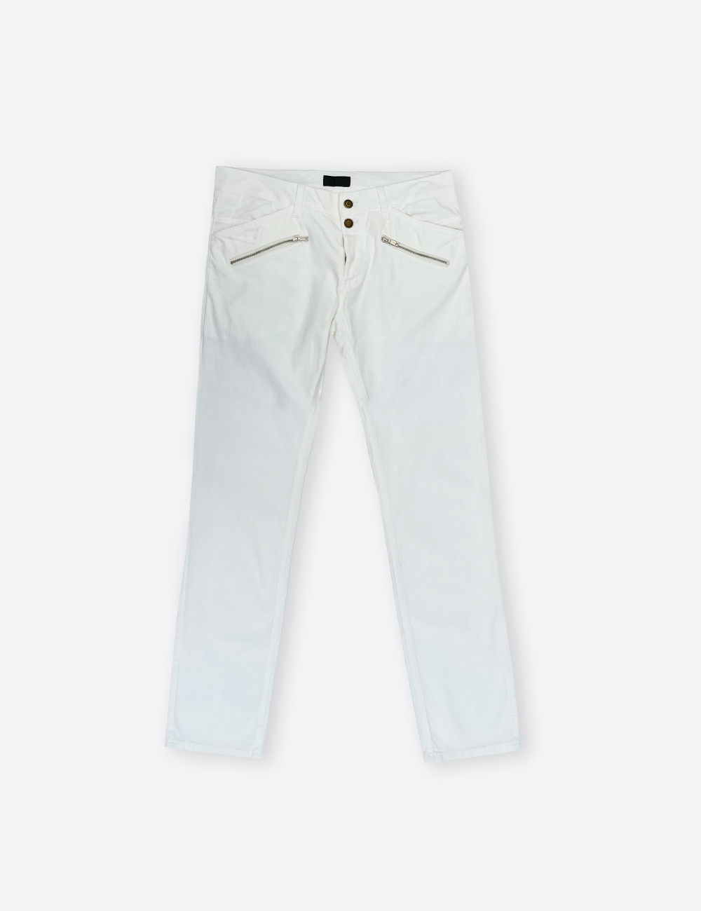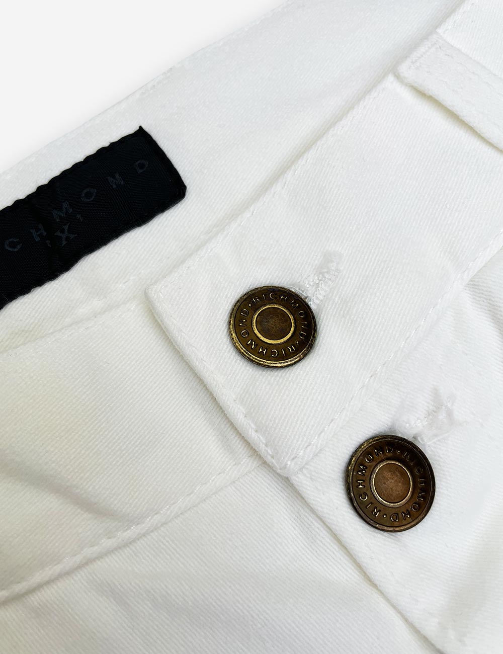 Richmond X ivory white jeans straight fit, very soft fabric, diagonal zipper pockets and subtle designs in threads, 97% cotton, size EU 44