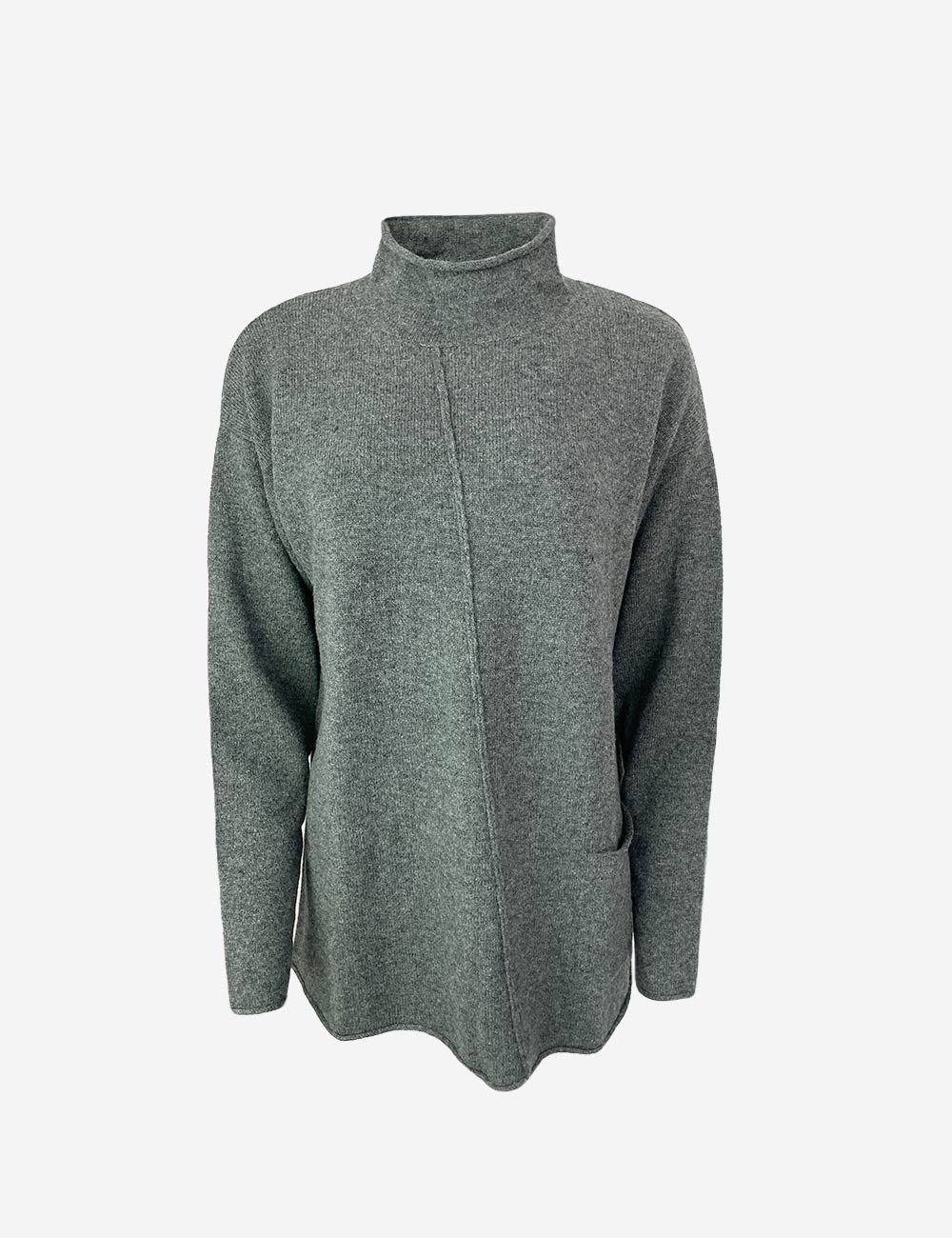 SELECTED Concept grey sweater with a lite roll neck and one front pocket, 99% wool, size OS
