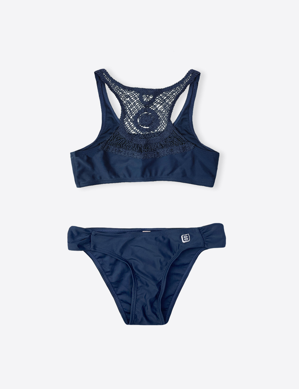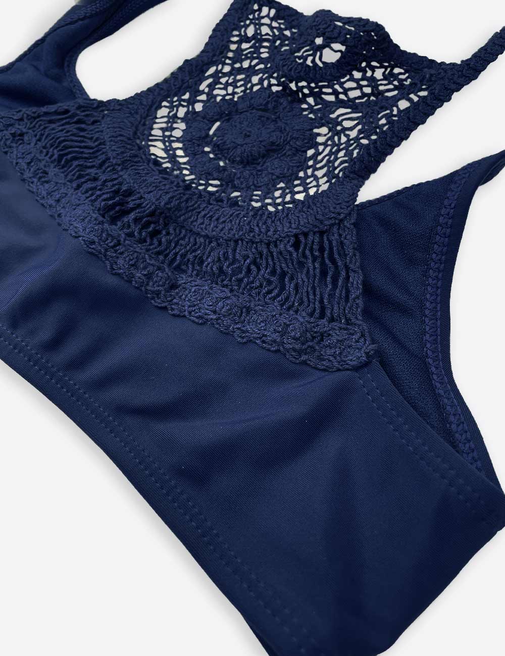 Shiwi navy bikini set with crochet details on top, size 164 cm