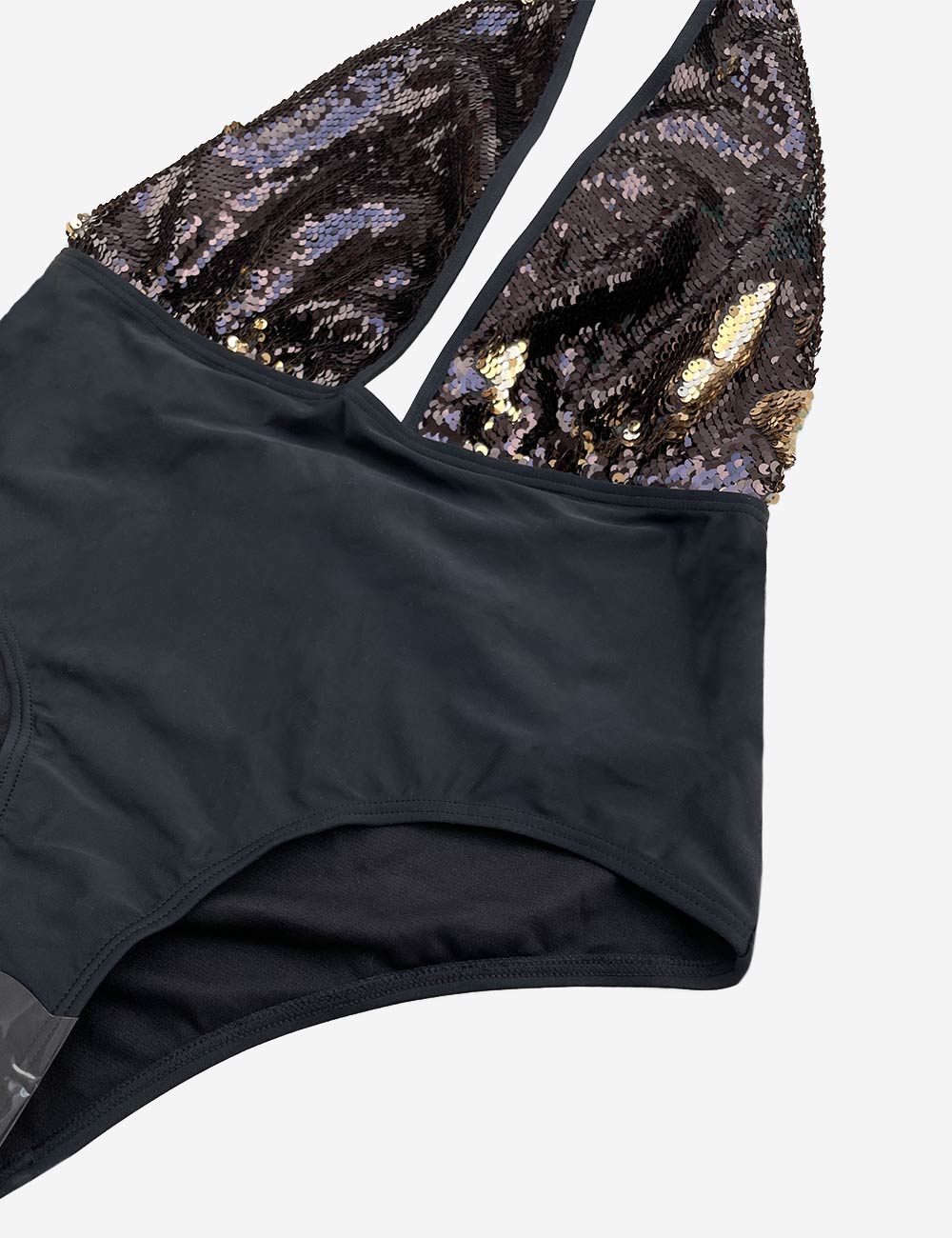 Southbeach black one piece plunge swimsuit with open back and changing sequins, 100% polyester, size EU 42