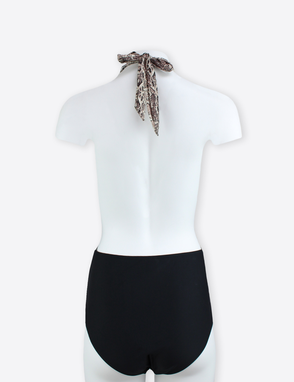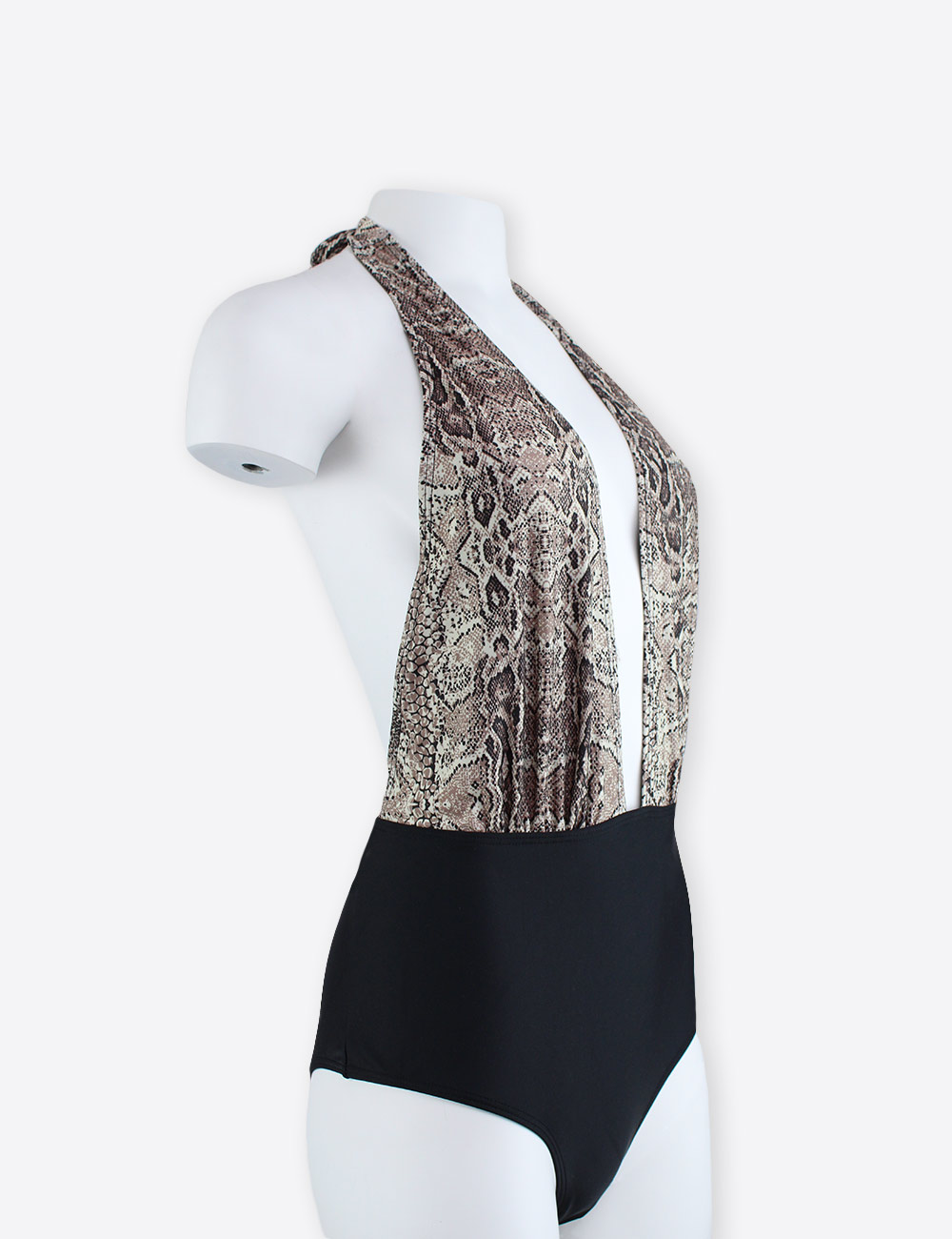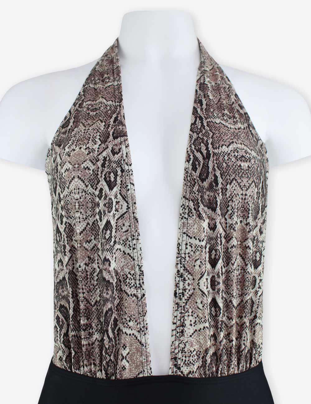 Southbeach black one piece plunge swimsuit with open back and snake pattern front, 100% polyester, size UK 14 (EU 42)