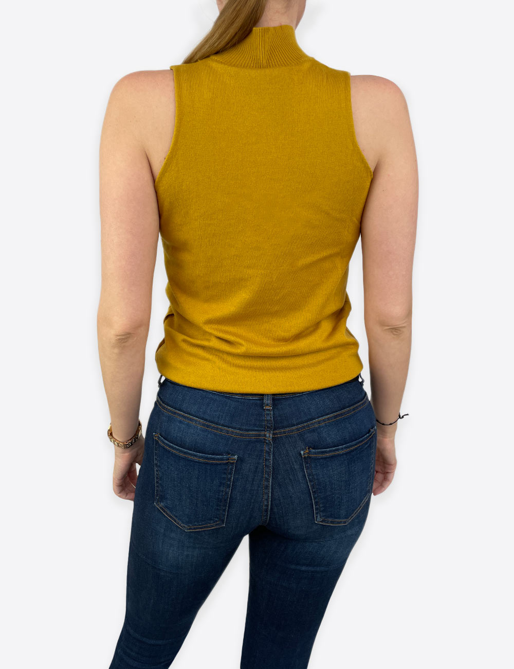 Trussardi mustard sleeveless high blouse with design buttons on the side, 55% silk 40% cotton and 5% cashmere, size M