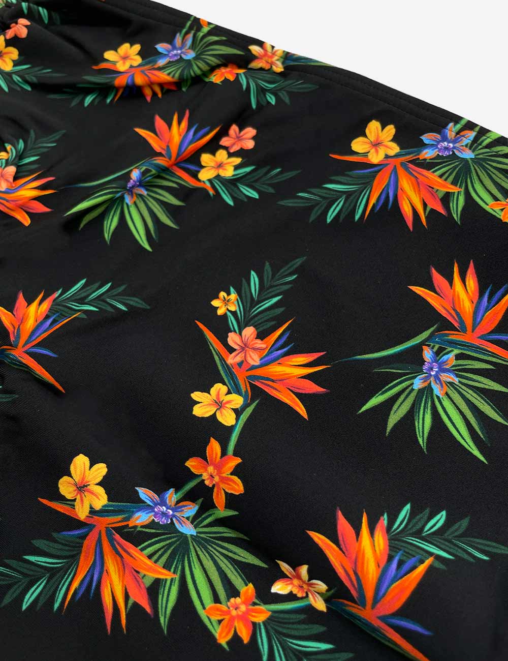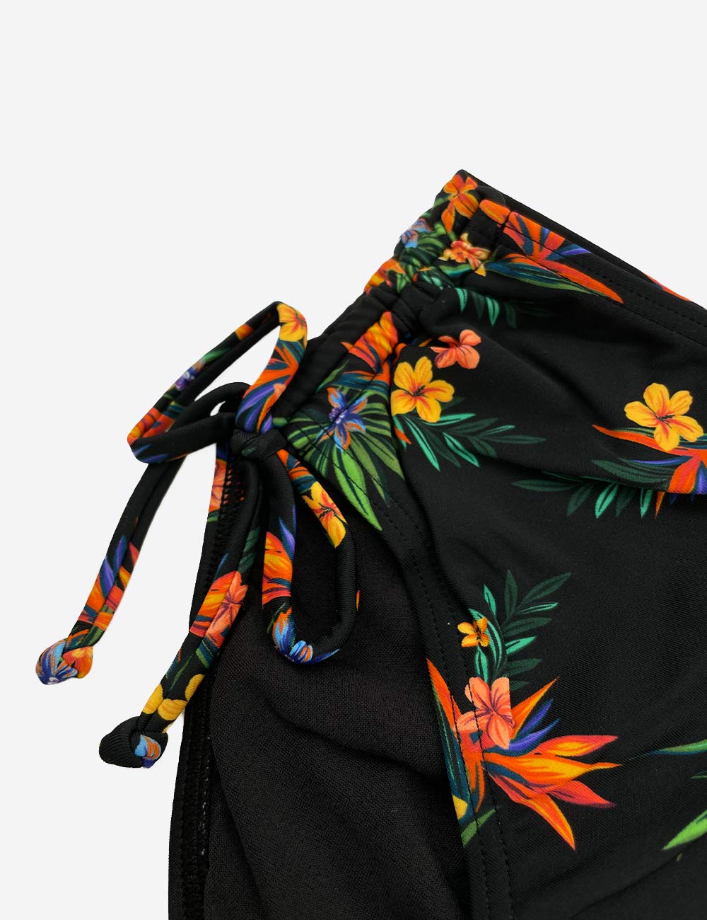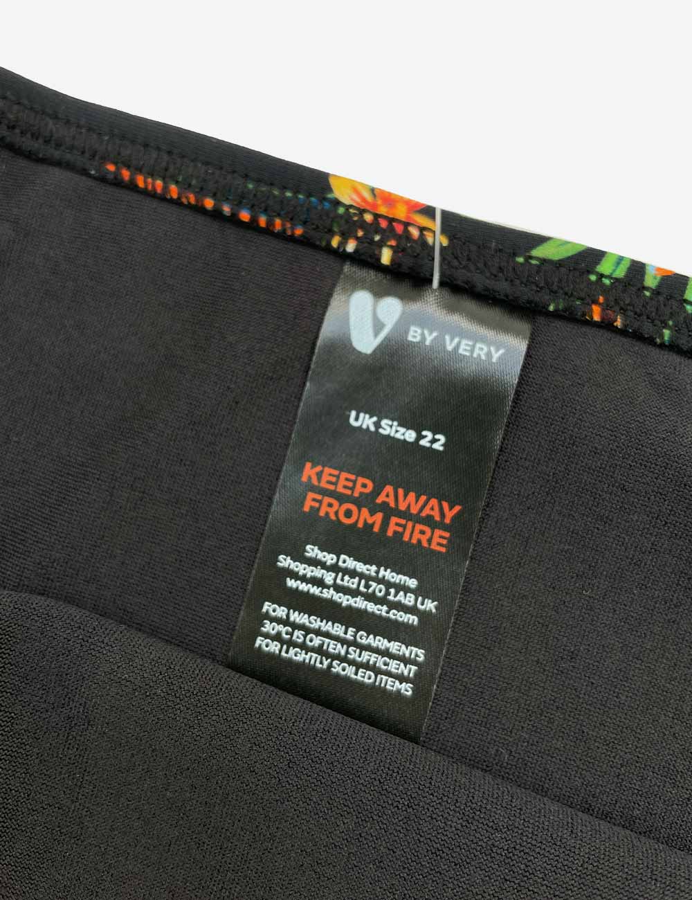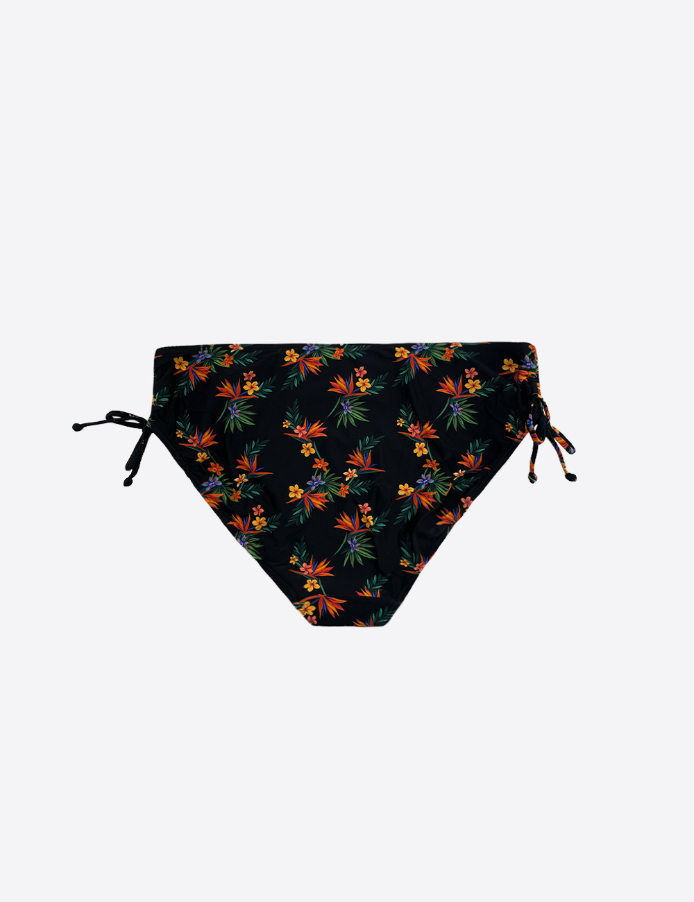 V by Very black bikini bottom with tropical flower pattern design and ruched sides, 80% polyamid 20% elastane, size UK 22