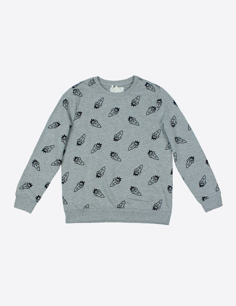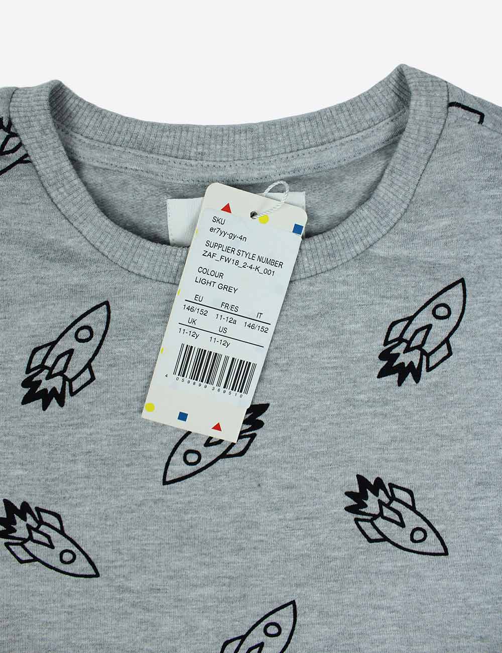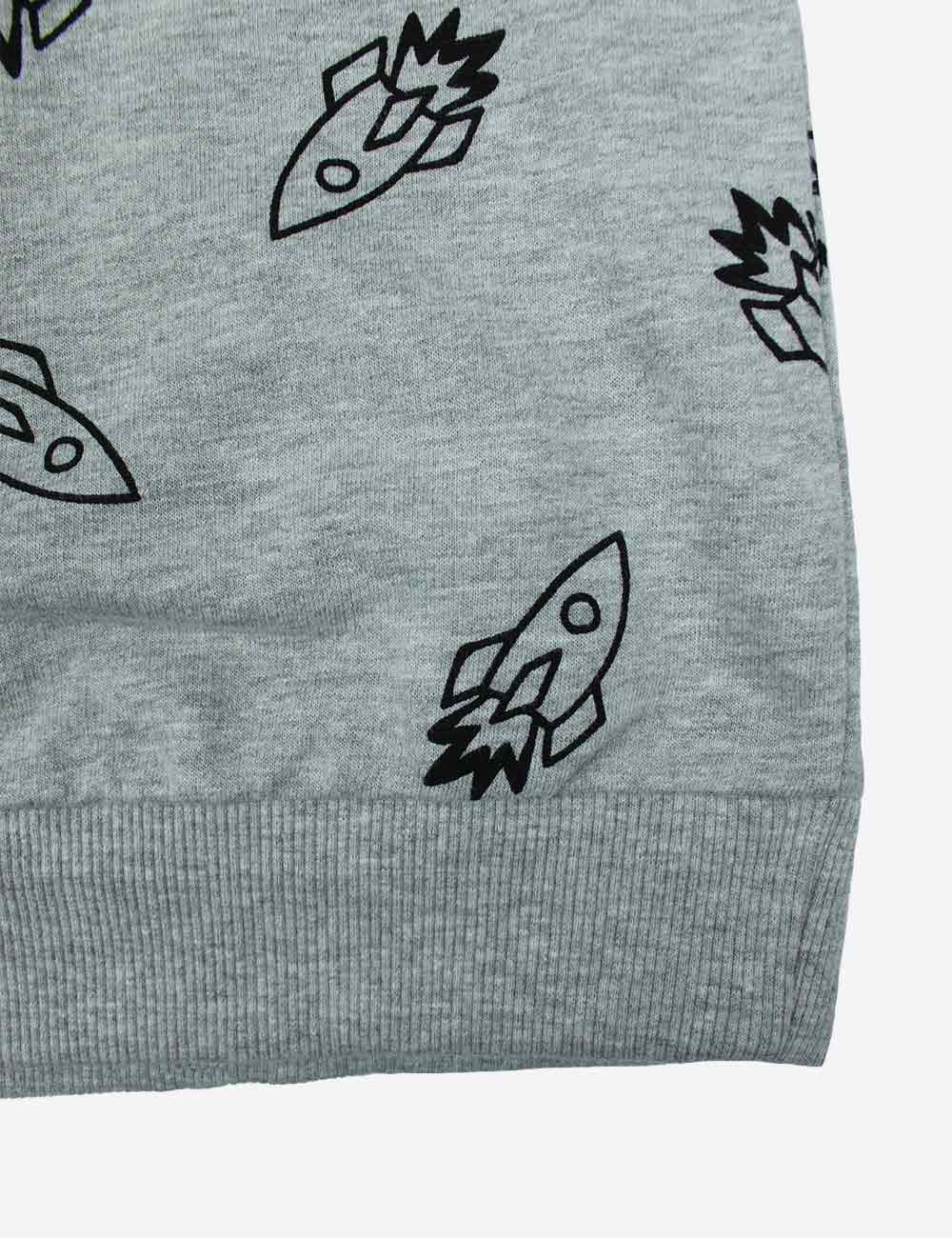 Zalando grey boy’s long sleeve sweatshirt with soft fleece interior and rocket pattern size 11-12 years (146-152 cm)